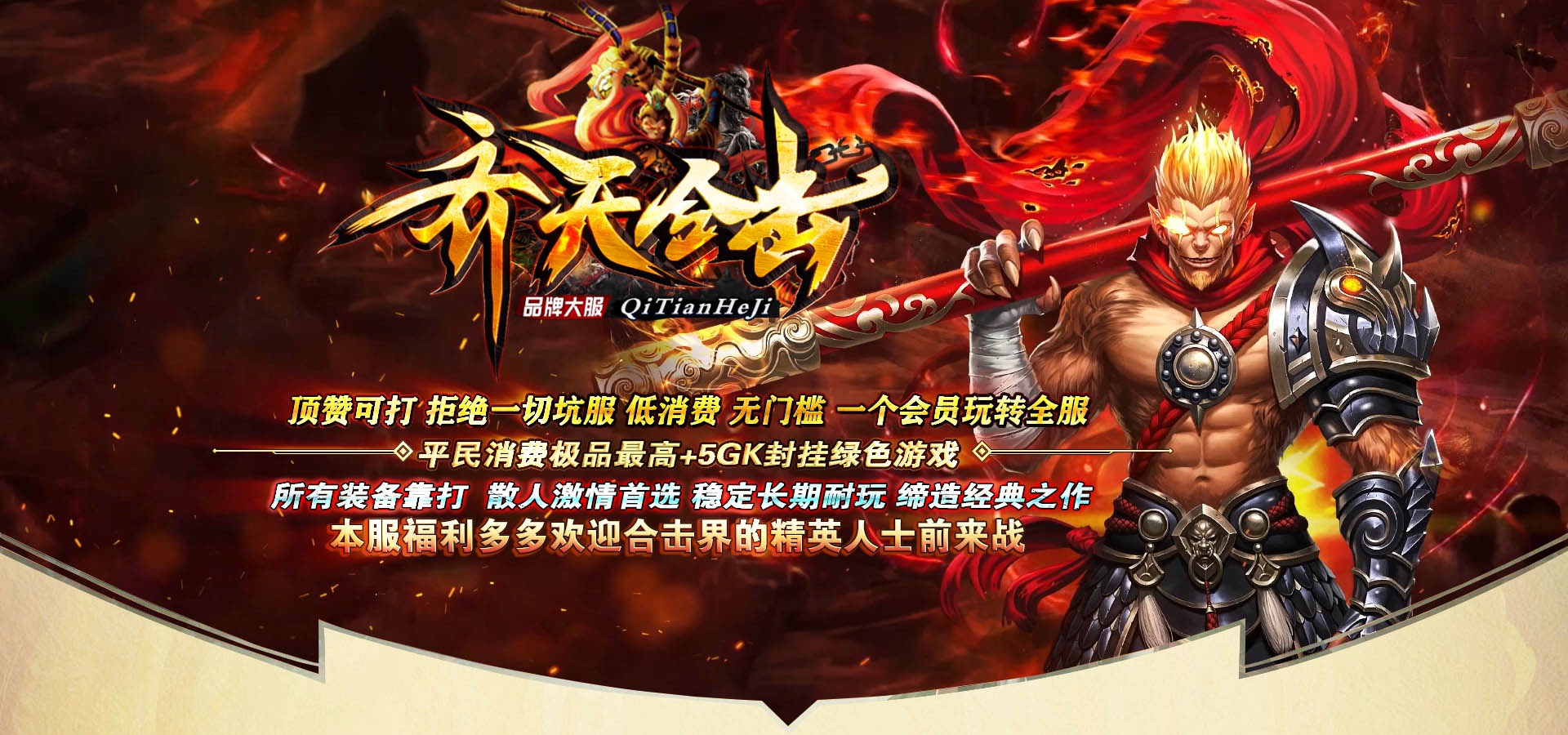 - 【游戏简介】:齐天合击1.80版本,极品最高+5,终极剑甲全爆,长久耐玩。